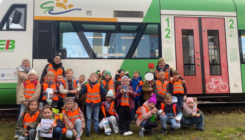 Die Kinder der Klasse 2a waren am Dienstag, 28.10.2025 sehr aufgeregt. Eine Exkursion zur Erfurter Bahn GmbH war geplant. Auf dem Werksgelände angekommen, bekamen wir erst einmal eine Warnweste und eine Schutzkappe. Wir sahen sehr lustig aus. Dann ging es …