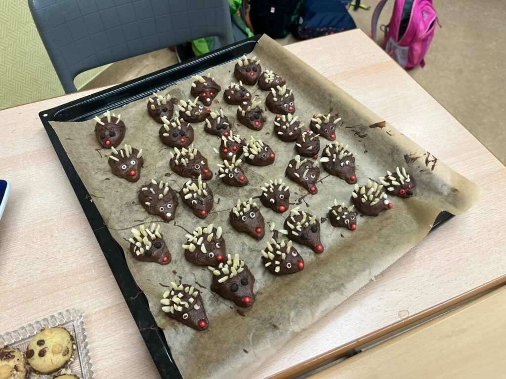 Am Ende unserer Projektwoche wurde es kreativ: Wir haben Igel gebastelt, gedruckt und sogar gebacken! Besonders viel Spaß hat uns das Backen gemacht, auch wenn es gar nicht so einfach war, den Teig in die richtige Igel-Form zu bringen.