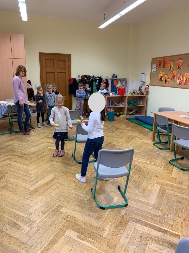 An den Bewegungsstationen konnten sich die Kinder beim Apfellauf und beim Apfelzielwurf am Apfelbaum austoben. Dabei war nicht nur Geschicklichkeit gefragt, sondern auch Teamgeist und eine Portion Spaß. Abschließend durften sich die Kinder bei einer Apfelmassage entspannen.
