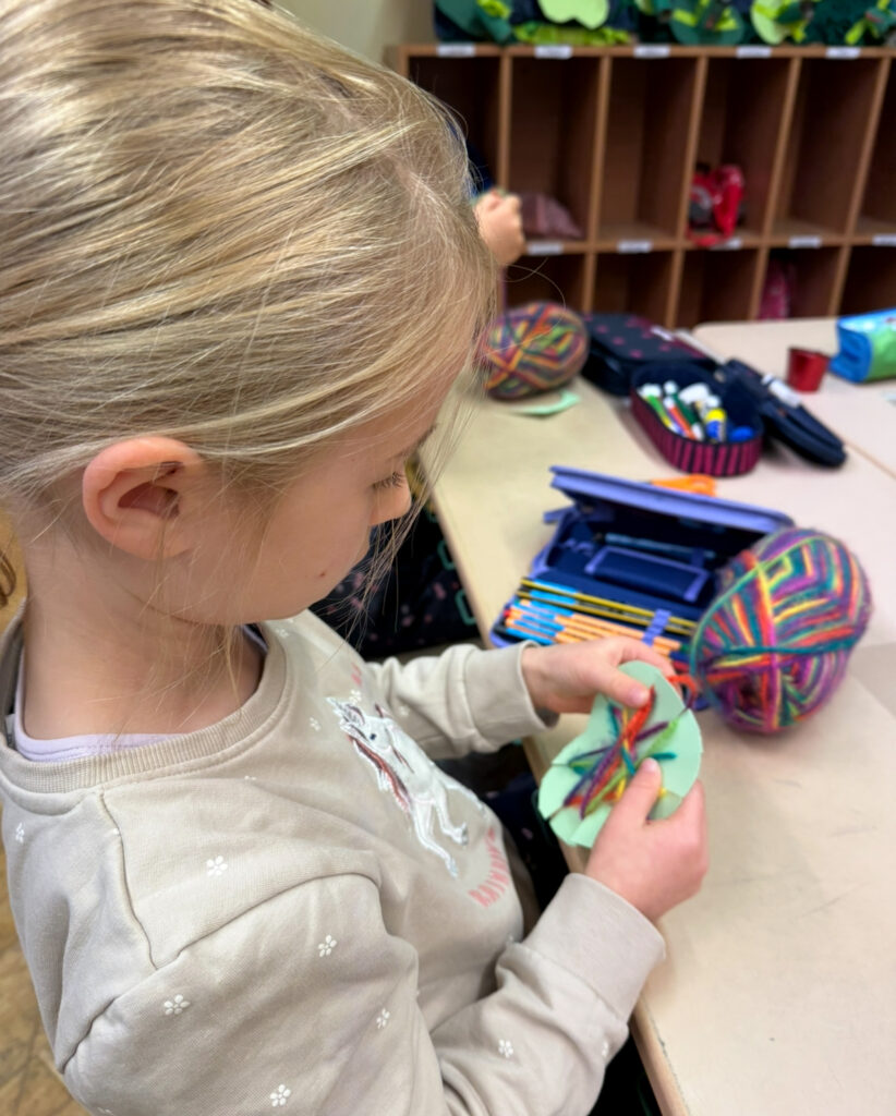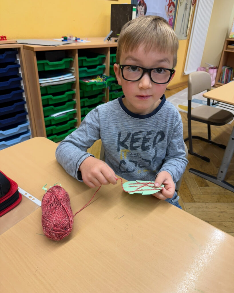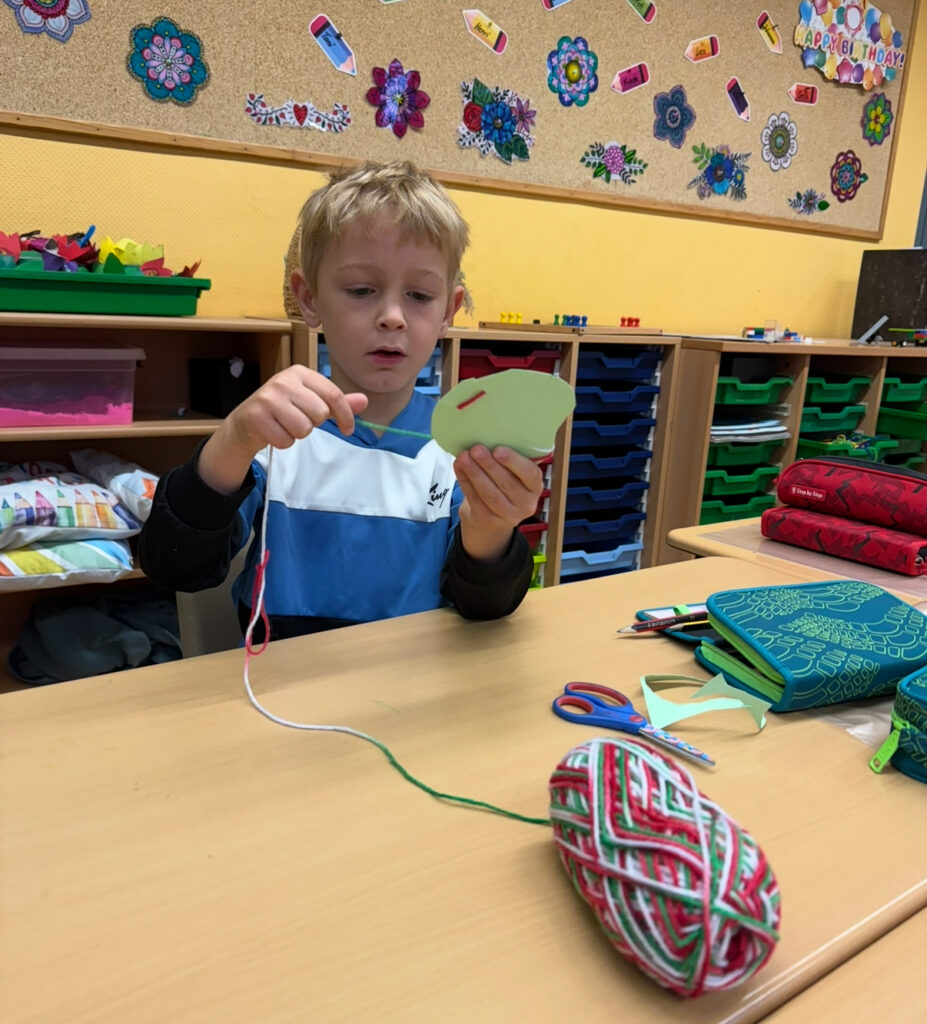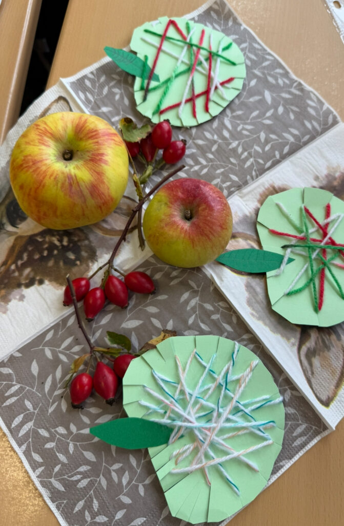 An einer Bastelstation wurden mit viel Geduld und Fingerfertigkeit Wickeläpfel aus Wolle hergestellt – eine kreative und herbstliche Erinnerung an diesen besonderen Tag.