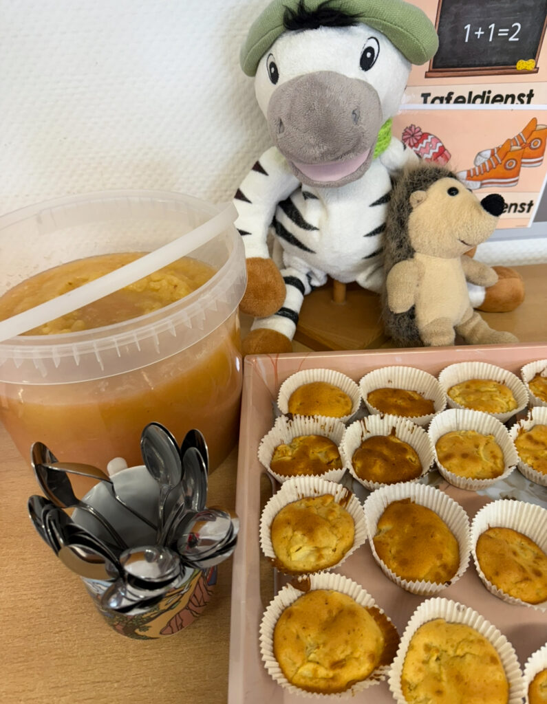 Zum Abschluss des Projekttags wurden der selbstgemachte Apfelmus und die Apfelmuffins gemeinsam verkostet. Alle waren stolz auf das, was sie gelernt und geschaffen hatten.