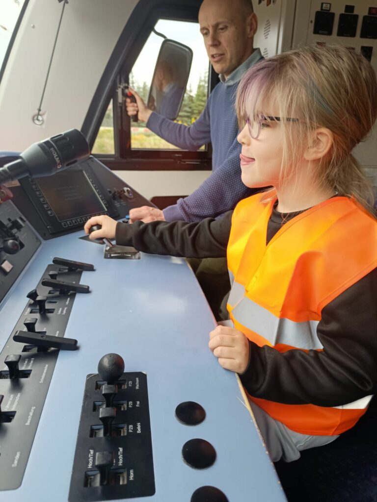 Nach dieser Stärkung waren wir bereit für die nächsten Herausforderungen. Jedes Kind durfte den Zug einmal selbst fahren. Das war ein tolles Erlebnis. Wir wurden ganz schön durchgeschüttelt, weil einige Kinder ziemlich stark gebremst haben.