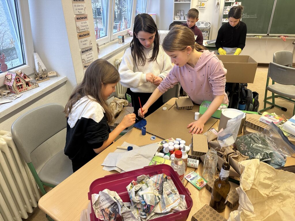 Die Schülerinnen und Schüler arbeiteten in Gruppen und bauten eigene Vulkane. Dabei konnten sie kreativ sein und selbst entscheiden, welche chemischen Reaktionen sie nutzen wollten. Von der klassischen Mischung aus Backpulver und Essig bis hin zu Cola und Mentos war alles dabei.